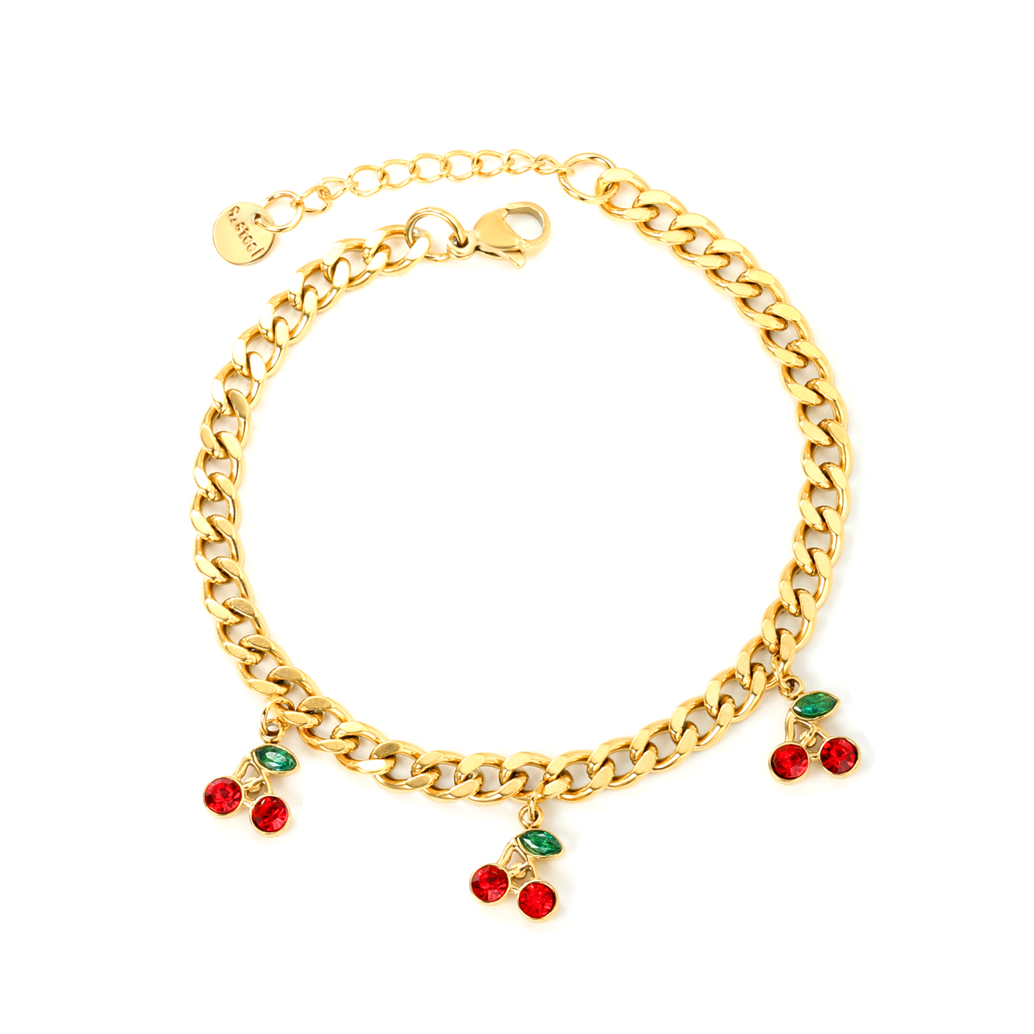 Playful Meets Polished: The Cherry Luxe bracelet features an eye-catching 8.6 x 10.3mm cherry accessory, blending charm and elegance in a minimalist design.