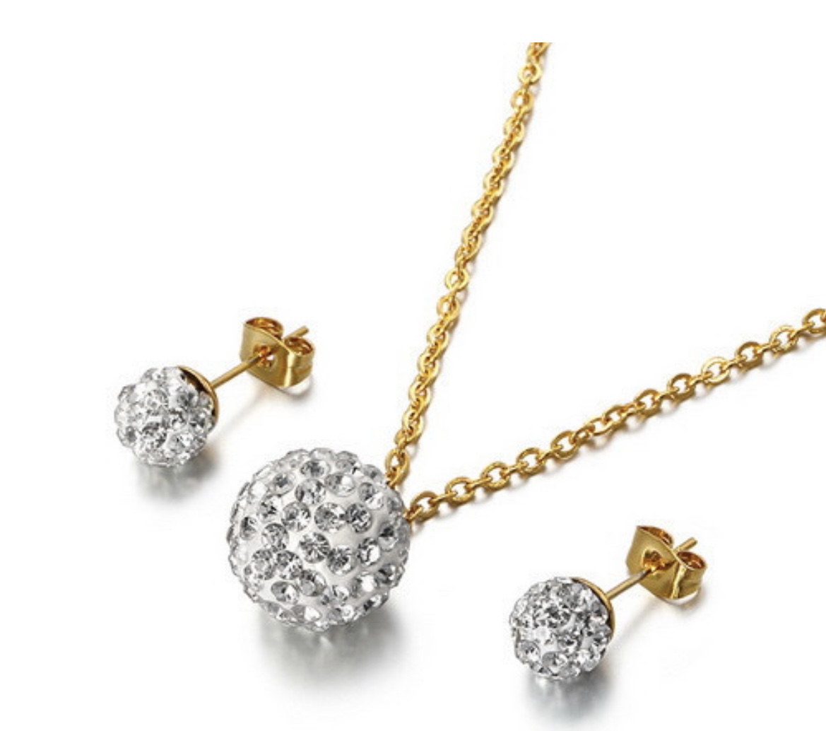 Golden Dazzel Duo Sparkling Zircon Necklace & Earring Set
