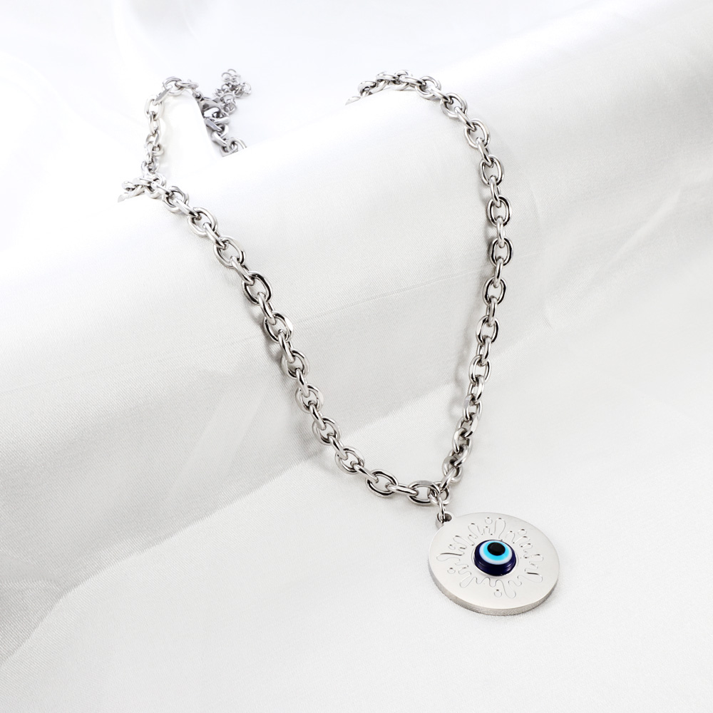 Powerful Symbolism: Designed with a captivating dark blue evil eye at the center, this necklace offers both elegance and spiritual protection from negative energy.