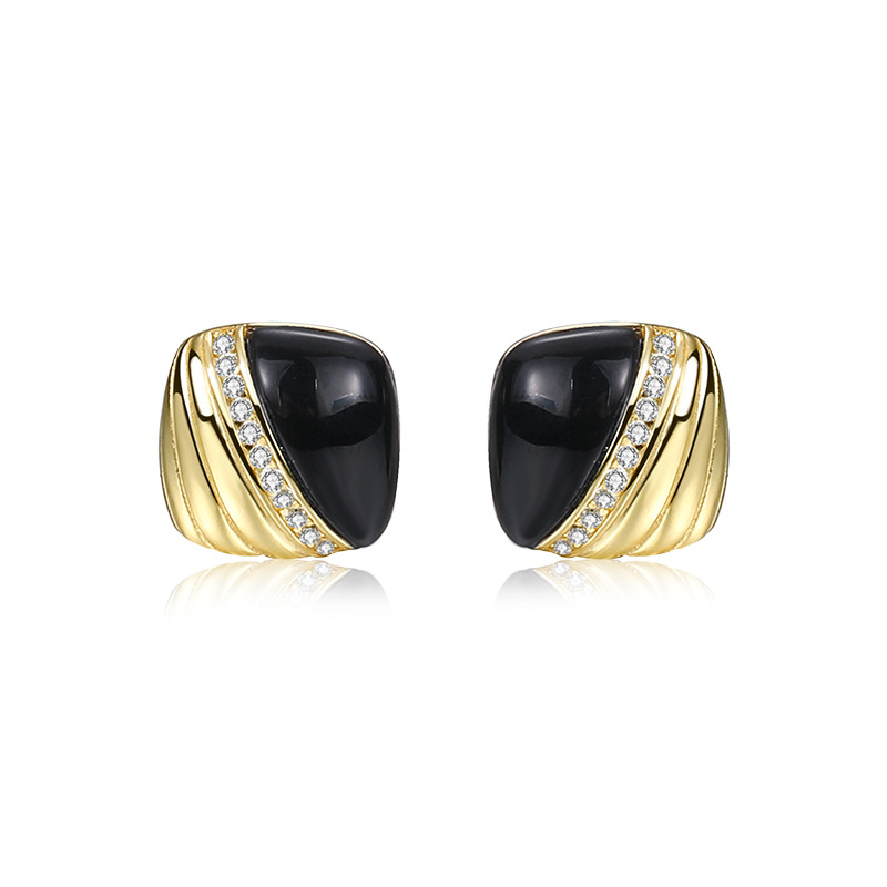 Black Onyx Square Earrings in 925 Silver with Golden Finish- 3.5g, 12.5×12.5mm